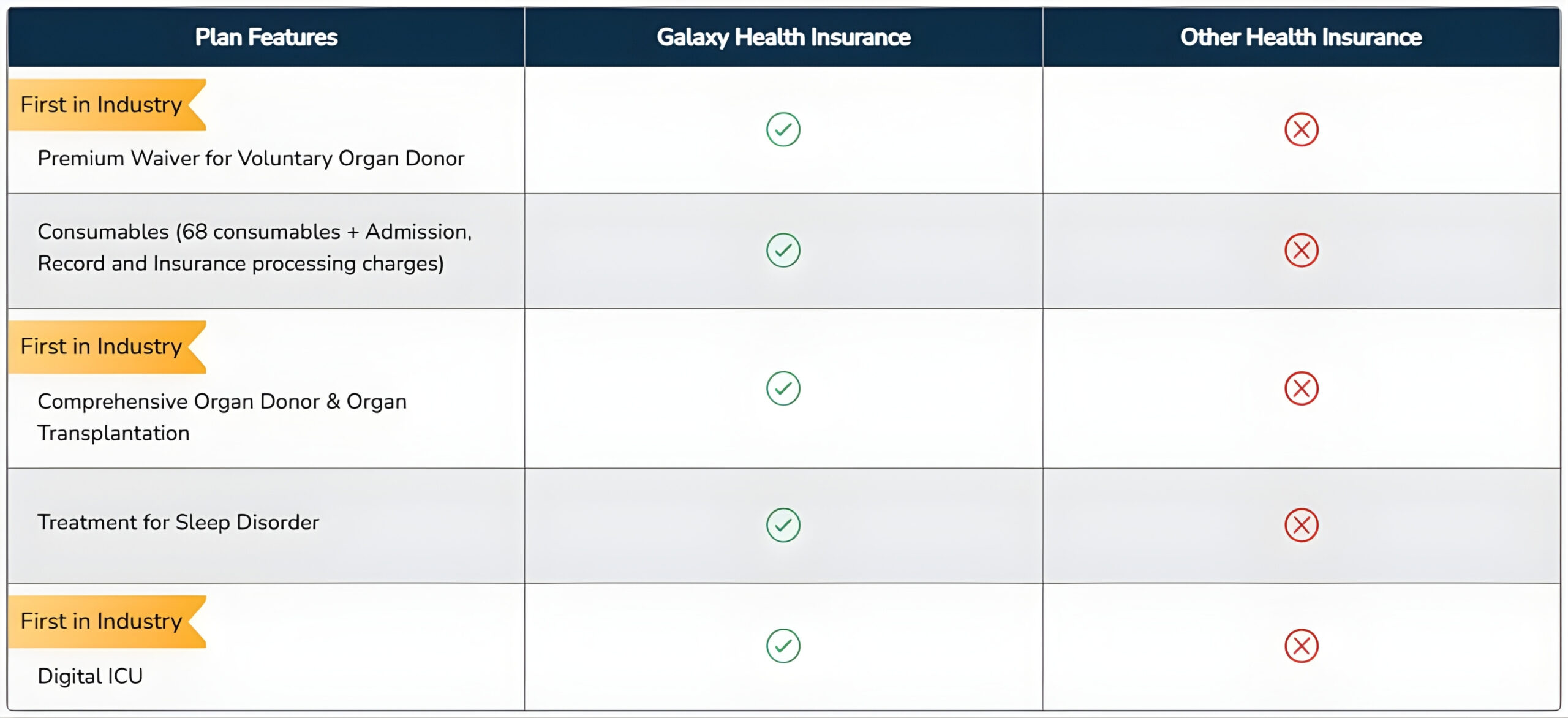 Galaxy Health Insurance ensures peace of mind with 100% claim settlement and zero cashless treatment, protecting your family from unexpected medical expenses with trusted, reliable healthcare coverage.